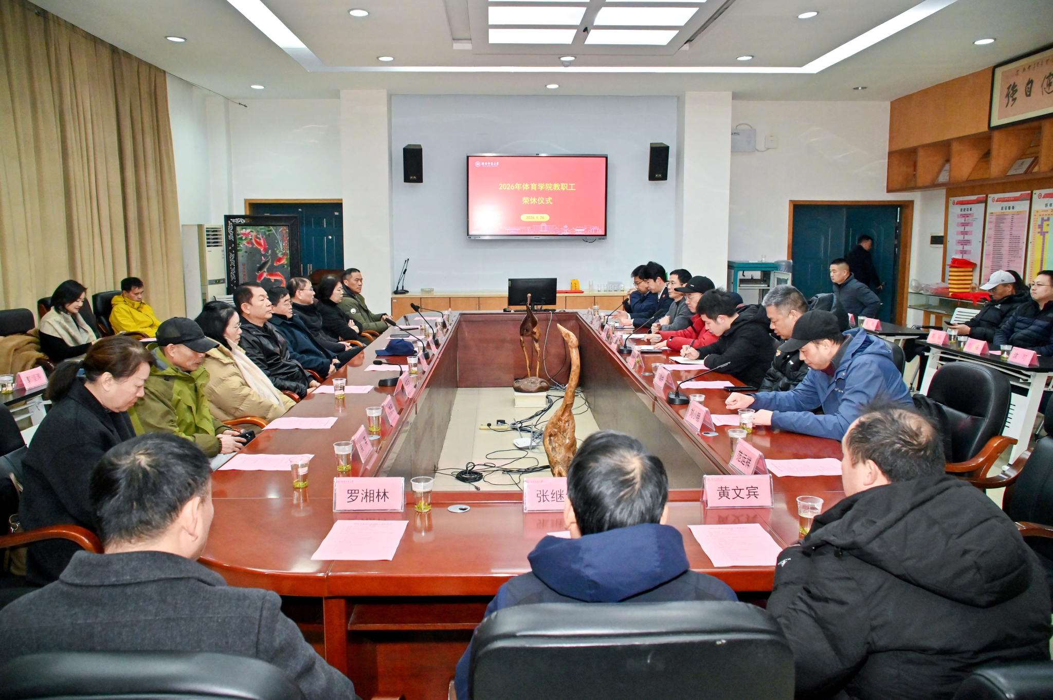 1月26日上午,体育学院2026年度教职工荣休仪式在教学楼一楼会议室举行。校离退休工作处党委书记尹建新、副处长方俊雄,院党委书记李波、副院长郭献中出席活动,活动由院党委副书记李皓主持。