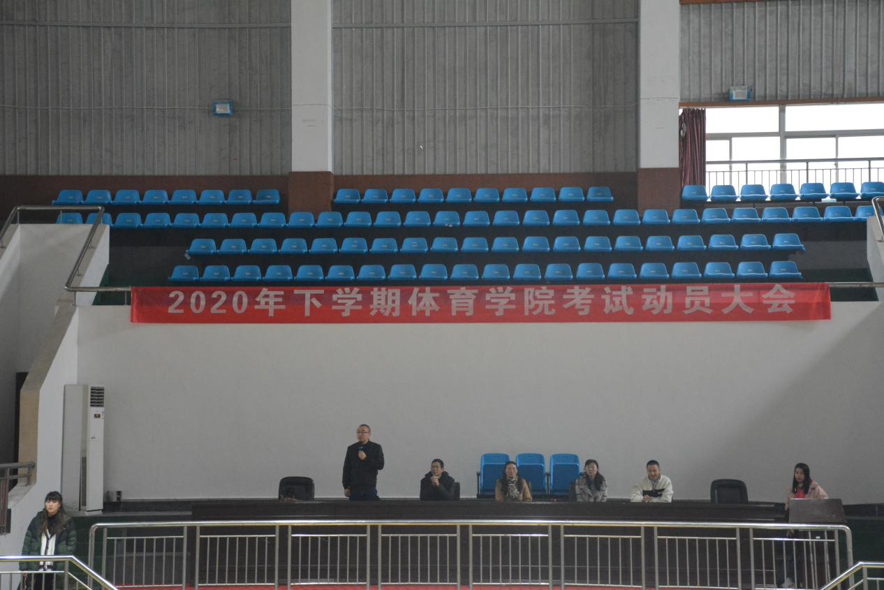 (通讯员 刘忠荣 晏众强 李耿)12月10日中午,我院于体育馆中厅召开2020年下学期期末考试动员大会,副院长刘花云、党委副书记李波、团委书记王静、学工办主任夏禹、学工办副主任李丽、2018级辅导员陈玲、2020级辅导员张自强出席大会。会议由2020级辅导员陈凤主持。
