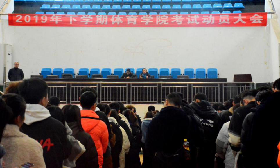 (通讯员 刘惠鹏 黄爱君)12月17日中午,我院于体育馆中厅召开2019年下学期期末考试动员大会,体育学院院长汤长发、体育学院副院长刘花云、党委副书记李波、学工办主任夏禹出席大会。会议由学工办主任夏禹主持。