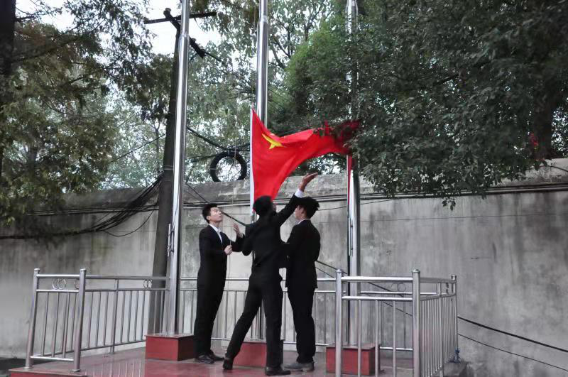(通讯员 黄婉婷 邓利娜)11月11日早上,我院举行了第十一周升旗仪式,党委副书记李波、学工办主任夏禹、2017级辅导员王静、2018级辅导员陈玲、2019级辅导员李丽、全体同学参与了此次升旗仪式。