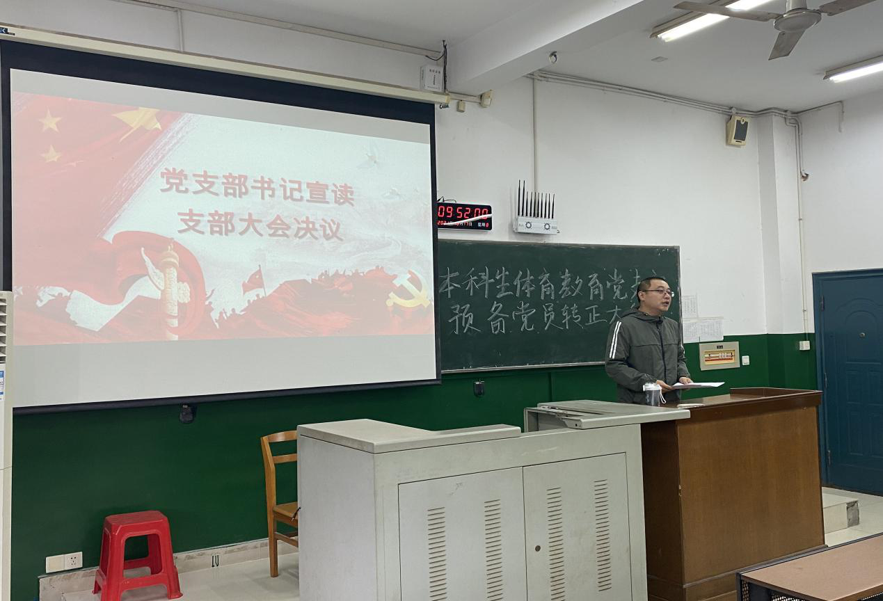 (通讯员 艾新平)10月17日上午,我院召开本科生体育教育党支部预备党员转正大会,我院学工办主任夏禹出席此次会议,参加此次会议成员共有38人,其中在常德实习的成员以视频会议的形式参加,新转正的党员有6人。本次会议由2018级中外体育教育专业李羽鑫主持。