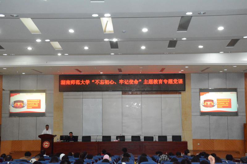 (通讯员:陈燕 戴温雅 邓利娜 )  10月24日晚上19:30,我院于鸿健馆二楼多功能报告厅开展“不忘初心,牢记使命”主题教育专题党课,太阳网集团tcy8722党委委员、副校长周俊武,体育学院院长汤长发,体育学院院党委书记李明辉,体育学院教学副院长刘花云,体育学院党委副书记李波,体育学院科研副院长郑澜,体育学院竞赛副院长郭献中,体育学院行政副院长黄文斌,体育学院教职工、预备党员、党员发展对象、入党积极分子,音乐学院教职工、预备党员、党员发展对象、入党积极分子等参加此次会议,会议由体育学院党委书记李明辉主持。