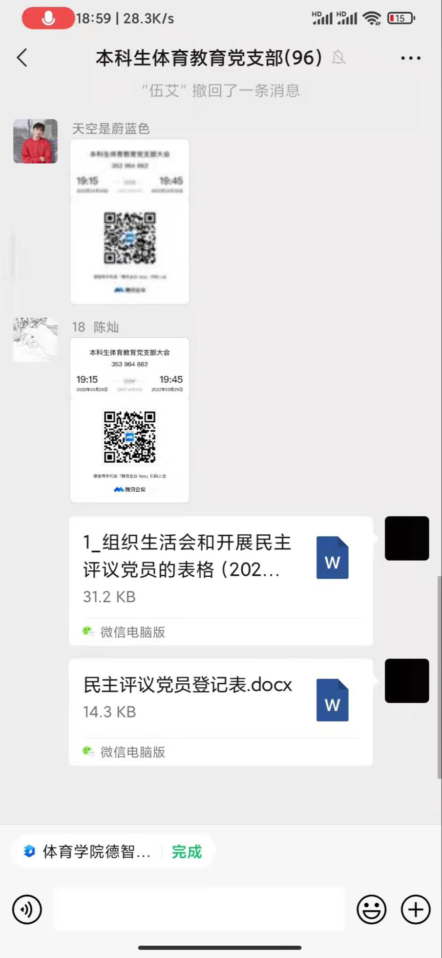 (通讯员 范一凡)3月29日晚,我院于线上召开体育教育专业本科生党支部大会,本次会议开展支部党员民主评议,由2018级中外合作办学体育教育专业李羽鑫主持,参加会议成员一共有65人。