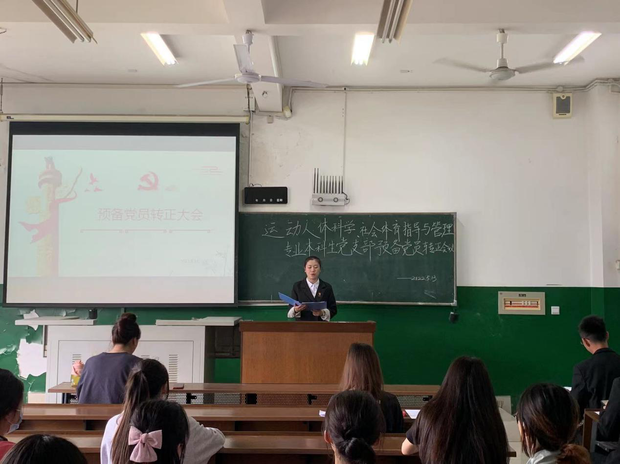 (通讯员刘忠荣)5月13日,我院在鸿健楼405教室召开运动人体科学、社会体育指导与管理专业本科生党支部预备党员转正会议。运动人体科学和社会体育指导与管理党支部书记李丽、2018级辅导员陈玲出席此次会议,支部全体成员参加此次会议。会议由预备党员张莎主持。