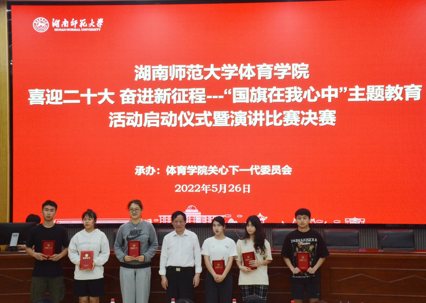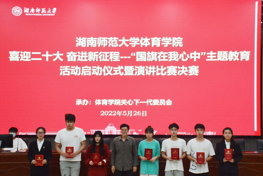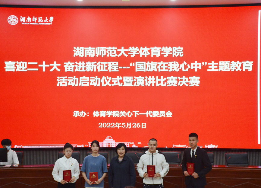 (通讯员 王鑫云)5月26日下午,我院在鸿建楼二楼多功能报告厅举行喜迎二十大 奋进新征程——“国旗在我心中”主题教育活动启动仪式暨演讲比赛决赛。我校关工委常务副主任徐书华、校关工委第四片组主任向际善、院党委书记李波、院关工委常务副主任赵杰、美术学院关工委常务副主任胡师正、学工办主任夏禹、团委书记王静、学工办副主任李丽、2018级辅导员陈玲、中外合作办学专职辅导员张自强、2020级辅导员陈凤以及优秀校友黄庭出席本次比赛。由2020级民族传统与武术专业陈稷主持本次比赛。