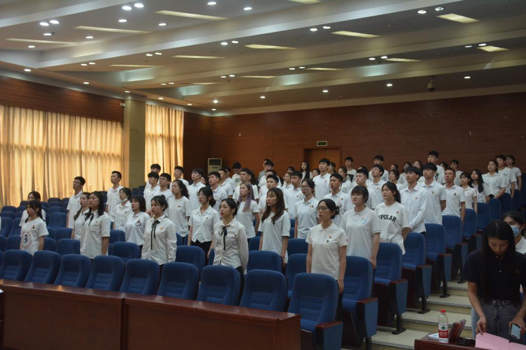 (通讯员 刘歆文)6月15日上午,我院于鸿健楼二楼多功能报告厅举行2022届毕业生“喜迎二十大,奋进新征程”主题党日活动。我校外国语学院原党委书记王龙彪、我院原党委书记李明辉、院党委书记李波、学工办主任夏禹、团委书记王静、学工办副主任李丽、2018级辅导员陈玲、中外合作办学专职辅导员张自强、2020级辅导员陈凤出席会议。2022届毕业生党员参会。本次活动由院组织人事秘书胡雨雯主持。