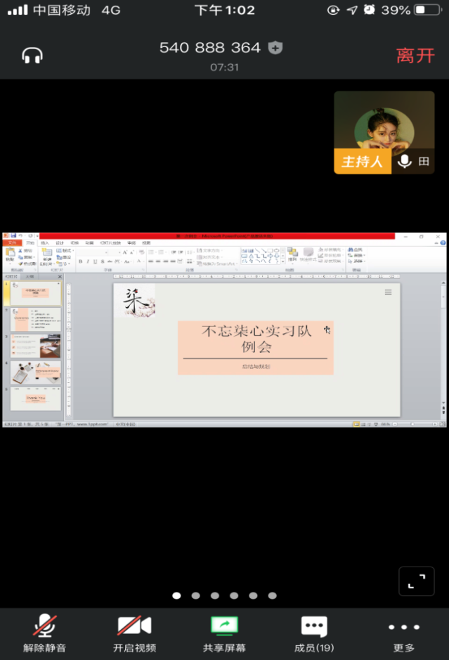 (通讯员 李佼慕 周巧玲 向优兰)5月25日下午13:00,为总结第一周任务完成情况,落实本周工作安排,我院2017级不忘柒心实习队于腾讯会议平台召开第二周例会,全体成员参与本次会议,会议由李佼慕主持。