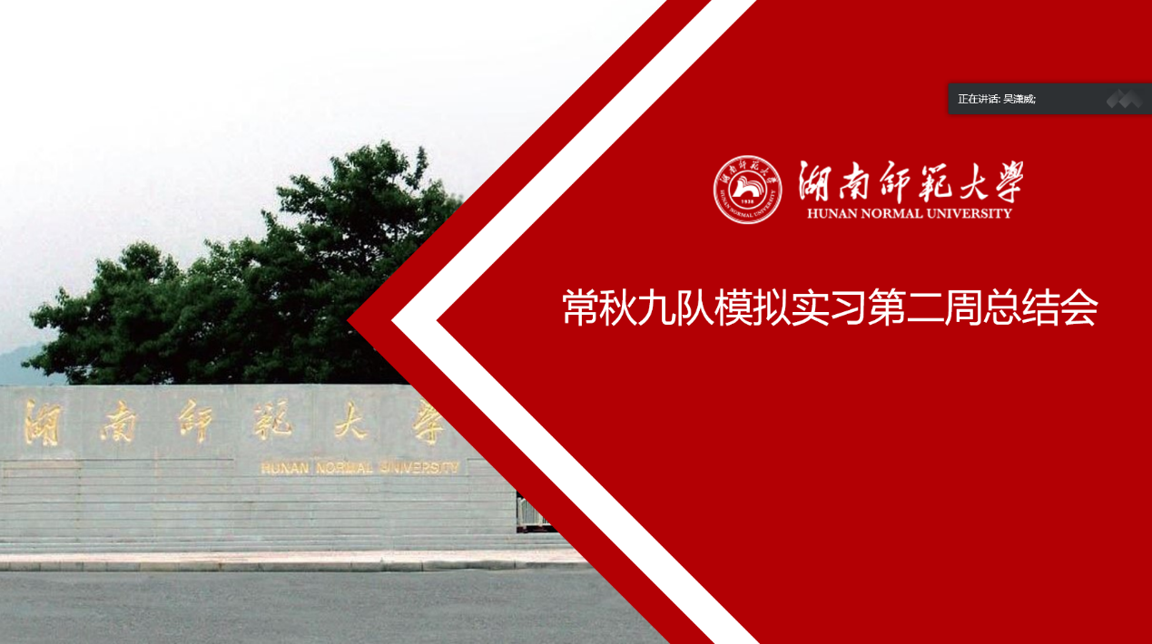 会议伊始,吴潇威对此次总结会的目的与内容做了简单介绍,随后由资料整理组各成员根据收集的队员实习照片与视频,对同学们第二周模拟实习出勤情况做出总结。队长吴潇威对第二周队内各项工作进行了总结并强调有关注意事项,他肯定了同学们模拟实习第二周的付出并对模拟实习需要上交的个人材料进行强调与梳理。