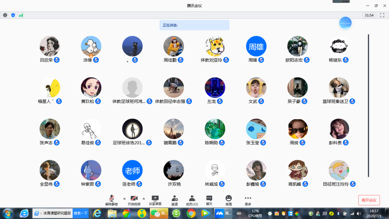 (通讯员 匡梨飞 胡斯宇 吕欣荣)7月3日晚19:00,体育学院2017级“向阳四队”实习队举行线上专项微课考核。本次考核由四队和十一队全体成员共同参与。评委老师为实习队指导老师匡梨飞,考核方式为两队分别抽签选取五位队员进行考核,其余队员进行看课及评课。