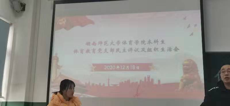 (通讯员 姚雅萍)12月18日中午12:30,为进一步加强党员队伍建设,促进党员增强党性,全面提高党员队伍的整体素质,我院本科生体育教育党支部成员于鸿健楼204教室召开了民主评议及组织生活会议,会议主题为本科生体育教育党支部民主评议及组织生活会议。本次会议由本科生体教党支部副书记易雯婷主持,学工办主任夏禹出席会议。