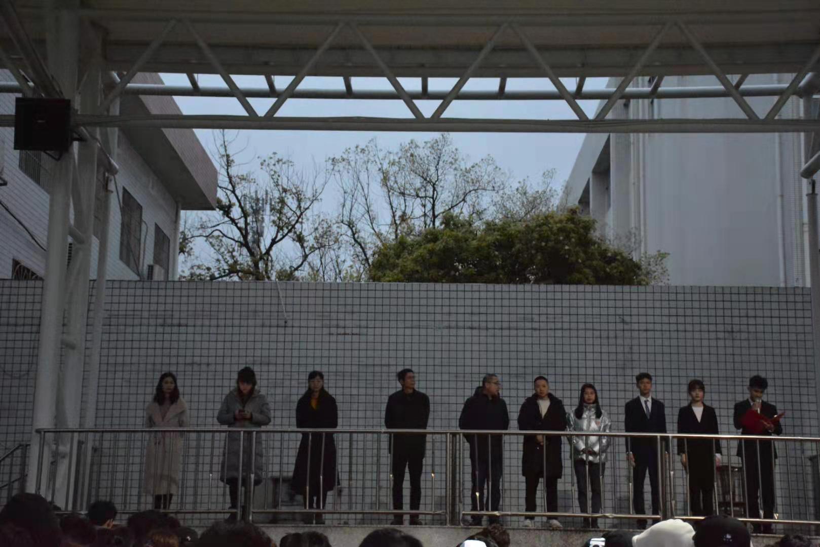 最后各年级辅导员分年级讲评,升旗仪式圆满结束。