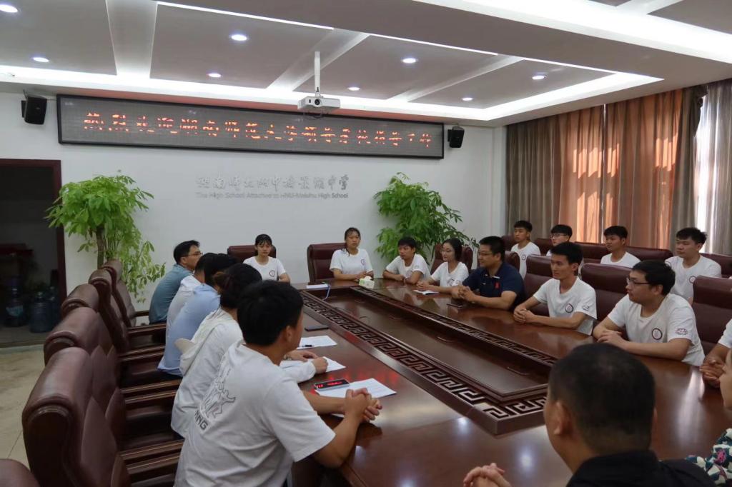 (通讯员 刘雨微 骆小双)9月15日上午,我院2018级“晨旭五队”于师大梅溪湖附属中学图书馆四楼会议室召开了首次会议。参会人员主要有副校长张志,主任覃孔敏、方煦、屈军友,体育组组长王恋,晨旭五队指导老师李先雄及全体队员。会议主要围绕四个议程项目来对此次实习工作协调安排。
