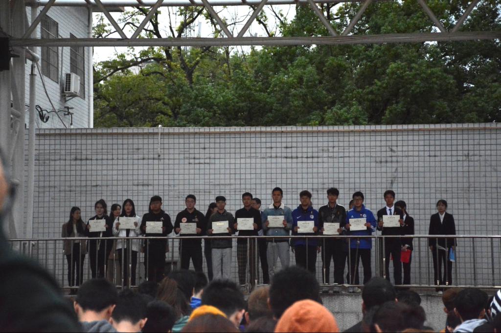 夏禹宣布军训表彰决定后,各年级辅导员分年级讲评,升旗仪式圆满结束。