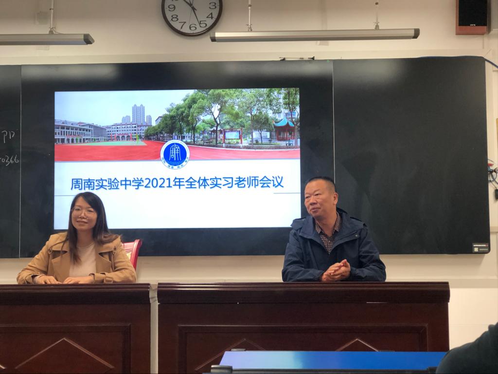 (通讯员 彭杭琪)10月12日上午,全体实习老师会议在周南实验中学教学楼一楼阶梯教室举行。此次会议由周南实验中学教务处老师刘冬阳主持,出席会议的有周南实验中学副校长胡宗如,我院实习队全体成员,我校地理实习队全体成员,湖南女子学院音乐实习队全体成员。