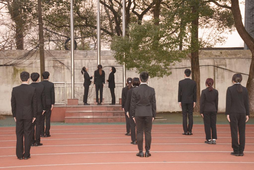 最后,各年级辅导员分年级讲评,升旗仪式圆满结束。