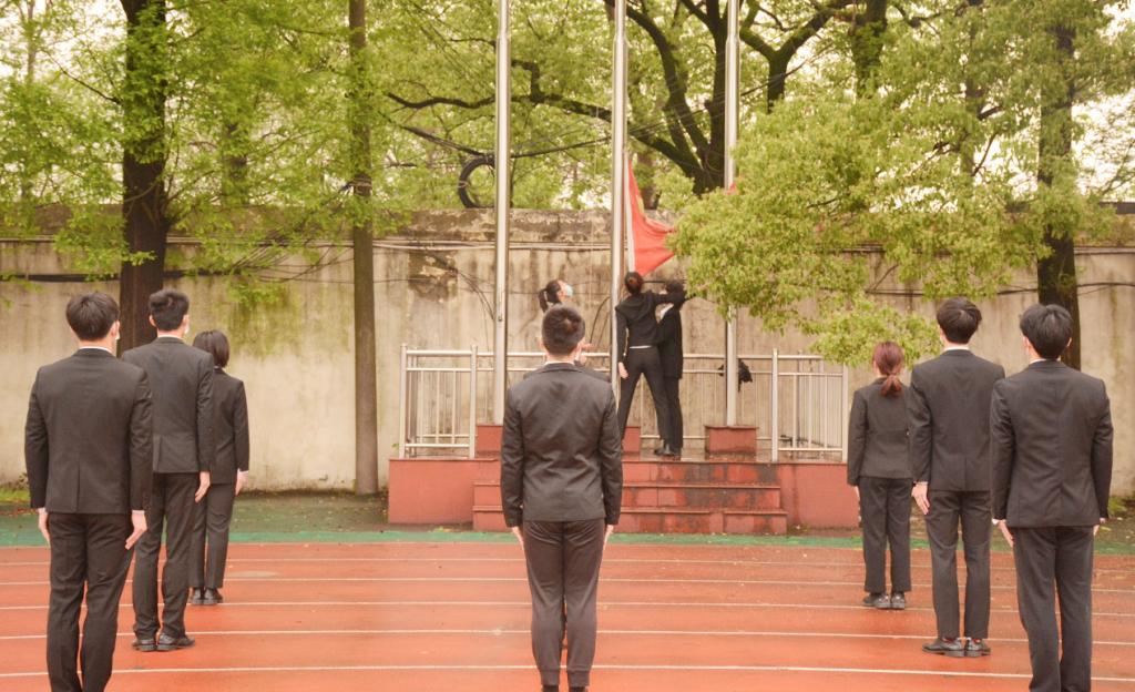 最后,各年级辅导员分年级讲评,升旗仪式圆满结束。