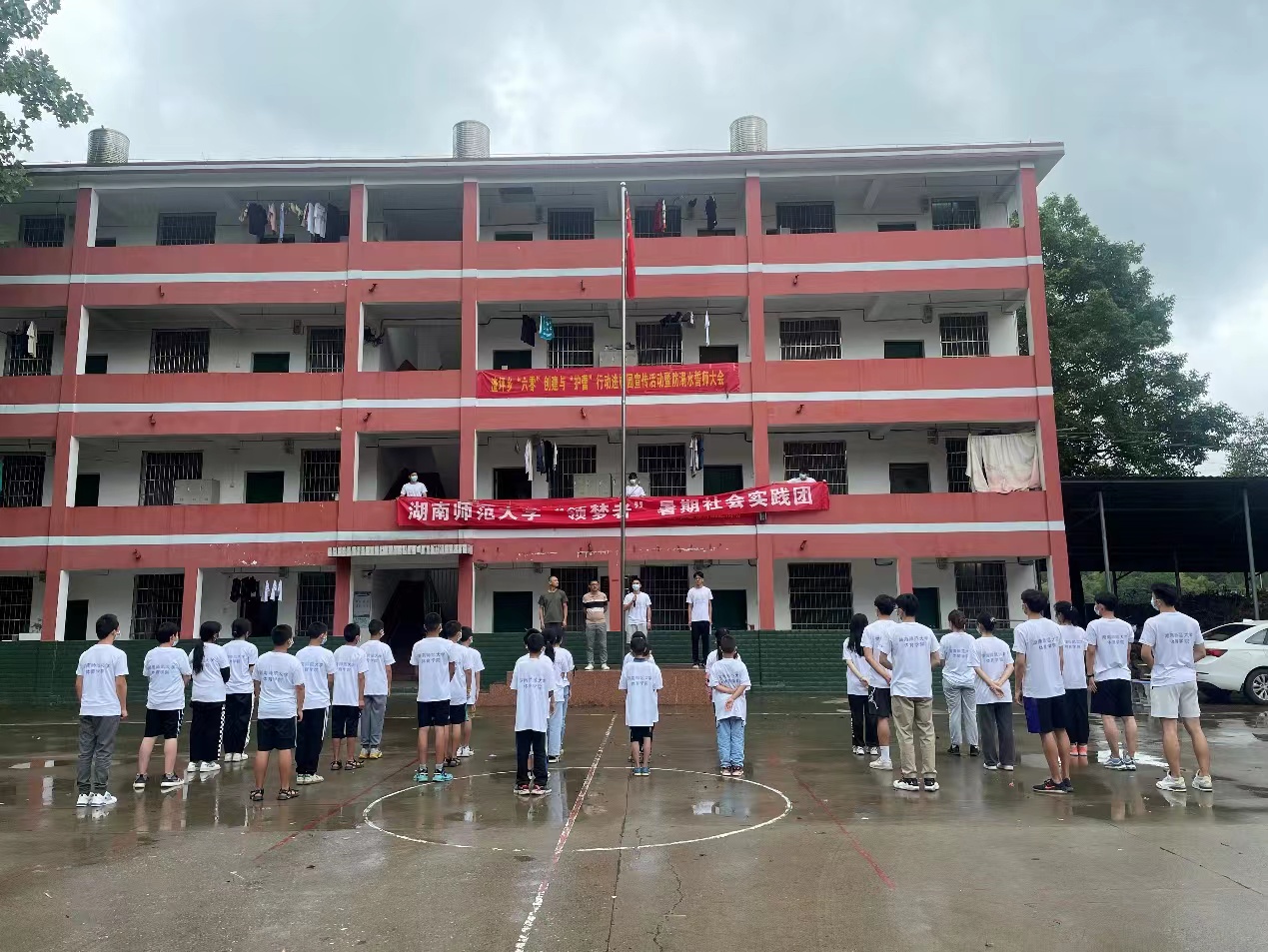 (通讯员 肖鹏 席荣昱 邹睿涵)2022年7月2日,“领梦者”---太阳网集团tcy8722体育学院赴邵阳洞口暑期社会实践团启程前往渣坪九年一贯制小学进行暑期社会实践活动。在实践地学校领导老师的支持下,陆续招募小学生32名,中学生25名。7月3日,我校体育学院“领梦者”暑期社会实践团与洞口县渣坪乡九年一贯制学校在庄严的国旗下成功举办了以“你我的再见面”为主题的开班仪式。本次开班仪式由徐柯威主持,参与人员有渣坪乡九年一贯制学校教导主任肖可,全体“领梦者”社会实践队队员以及来自各个年级的学生。