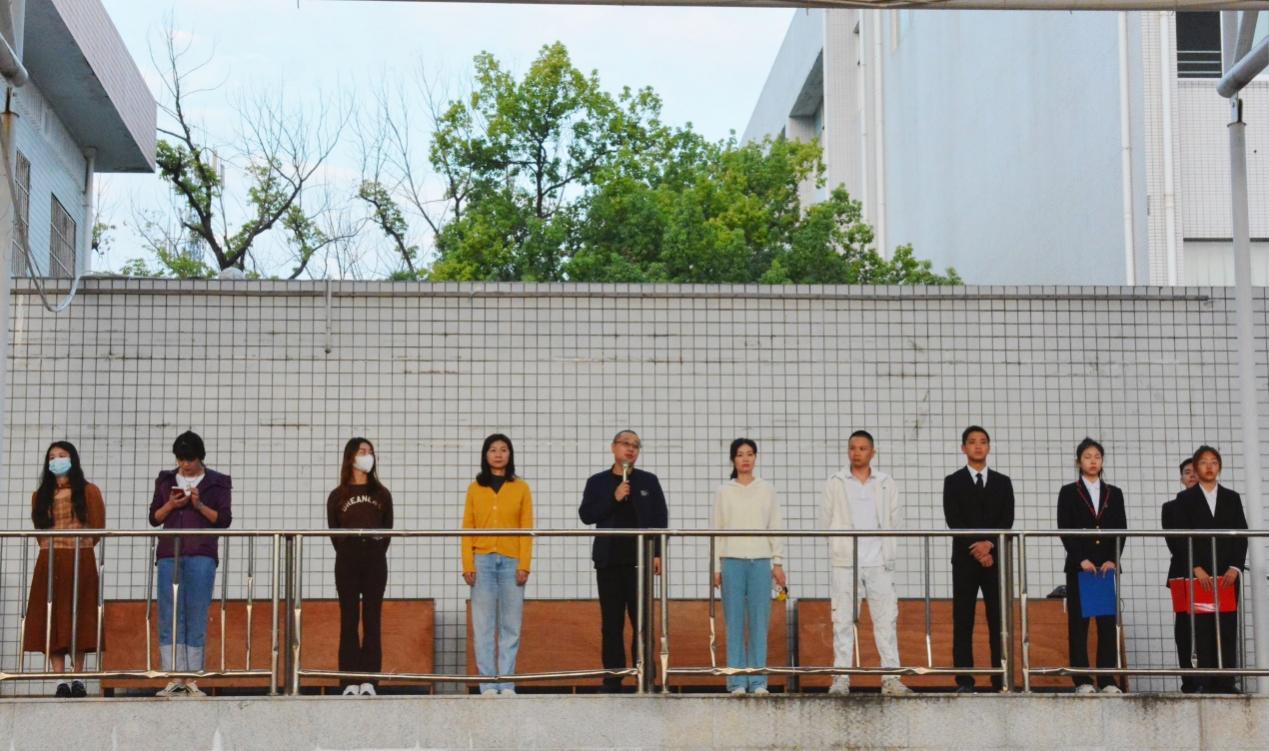 (通讯员:韩籽仪)10月24日早,我院举行第九周升旗仪式,学工办主任夏禹、团委书记王静、学工办副主任李丽、2022级辅导员陈玲、李羽鑫、中外合作办学专职辅导员张自强、2020级辅导员陈凤出席本次升旗仪式,2020、2021、2022级全体学生参加此次升旗仪式。