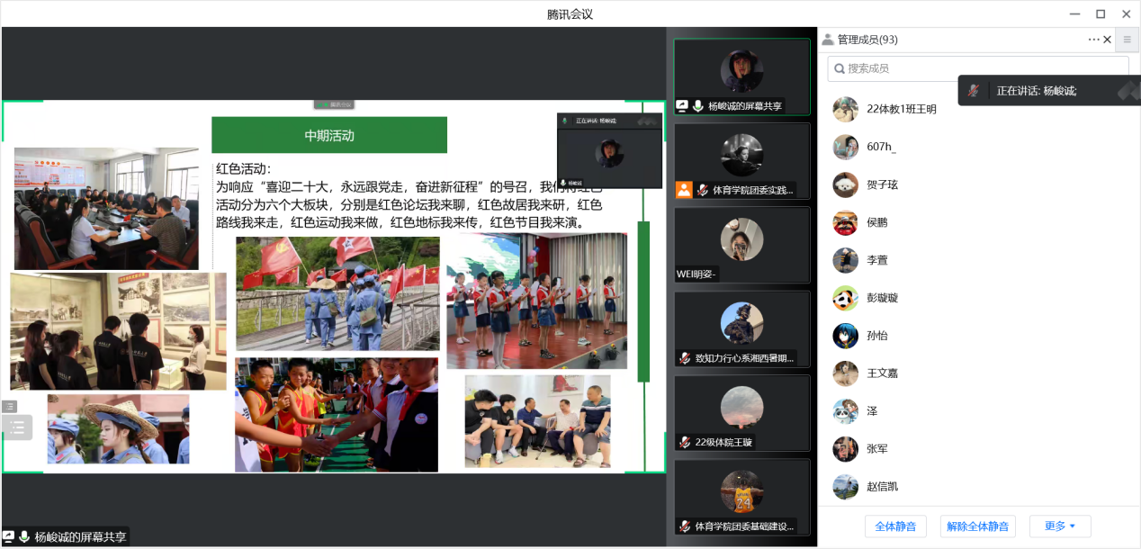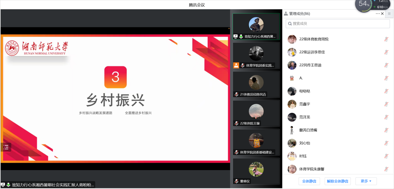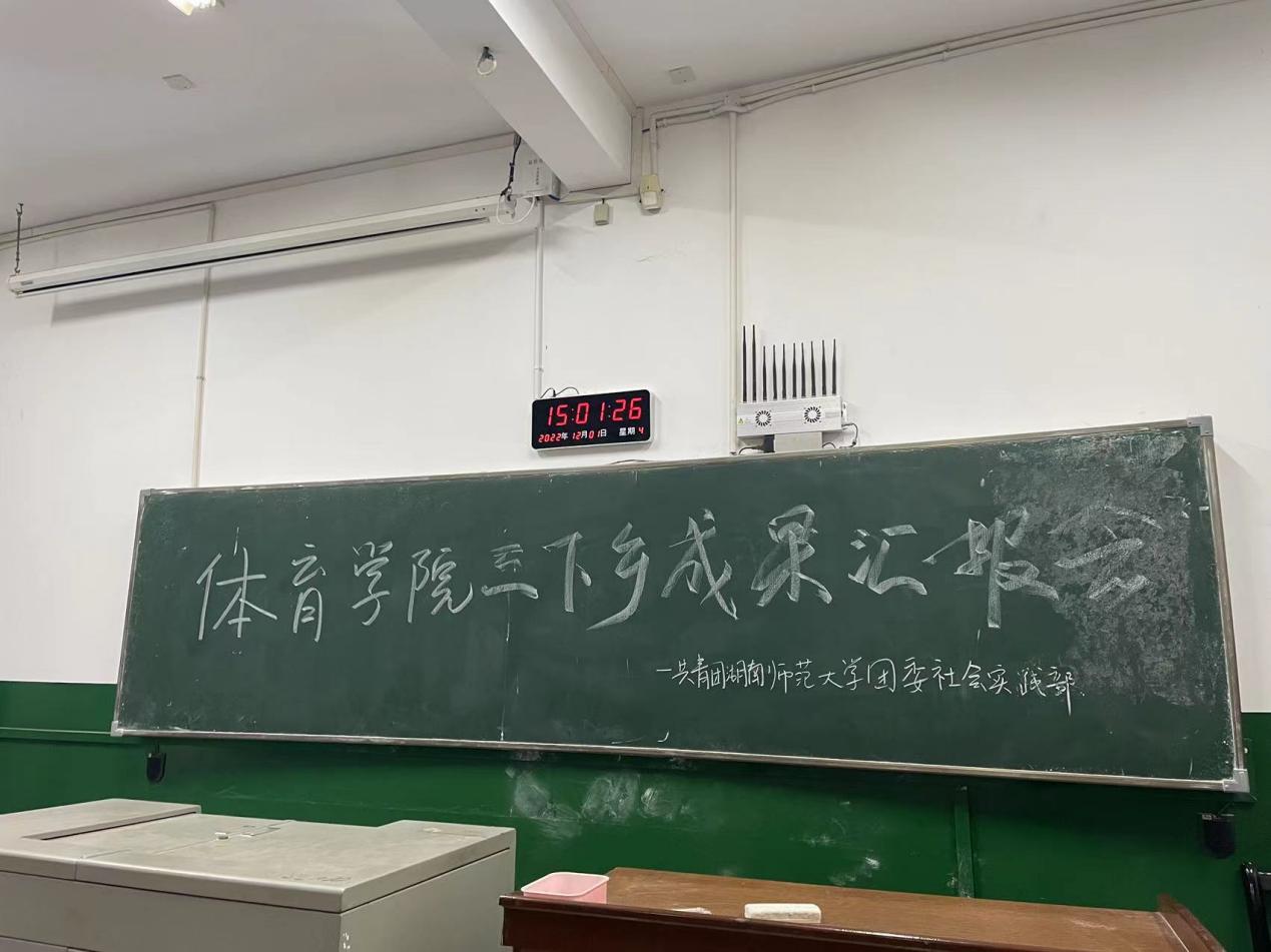 (通讯员:肖鹏)12月1日下午,我院于线上腾讯会议开展了三下乡成果汇报会,党委副书记李皓、学工办主任夏禹、团委书记王静、2022级辅导员陈玲、体育教育中外合作办学专职辅导员张自强、2022级辅导员李羽鑫出席本次会议,校团委实践部以及各年级代表参加会议。会议由2021级体育教育甄梦琦主持。