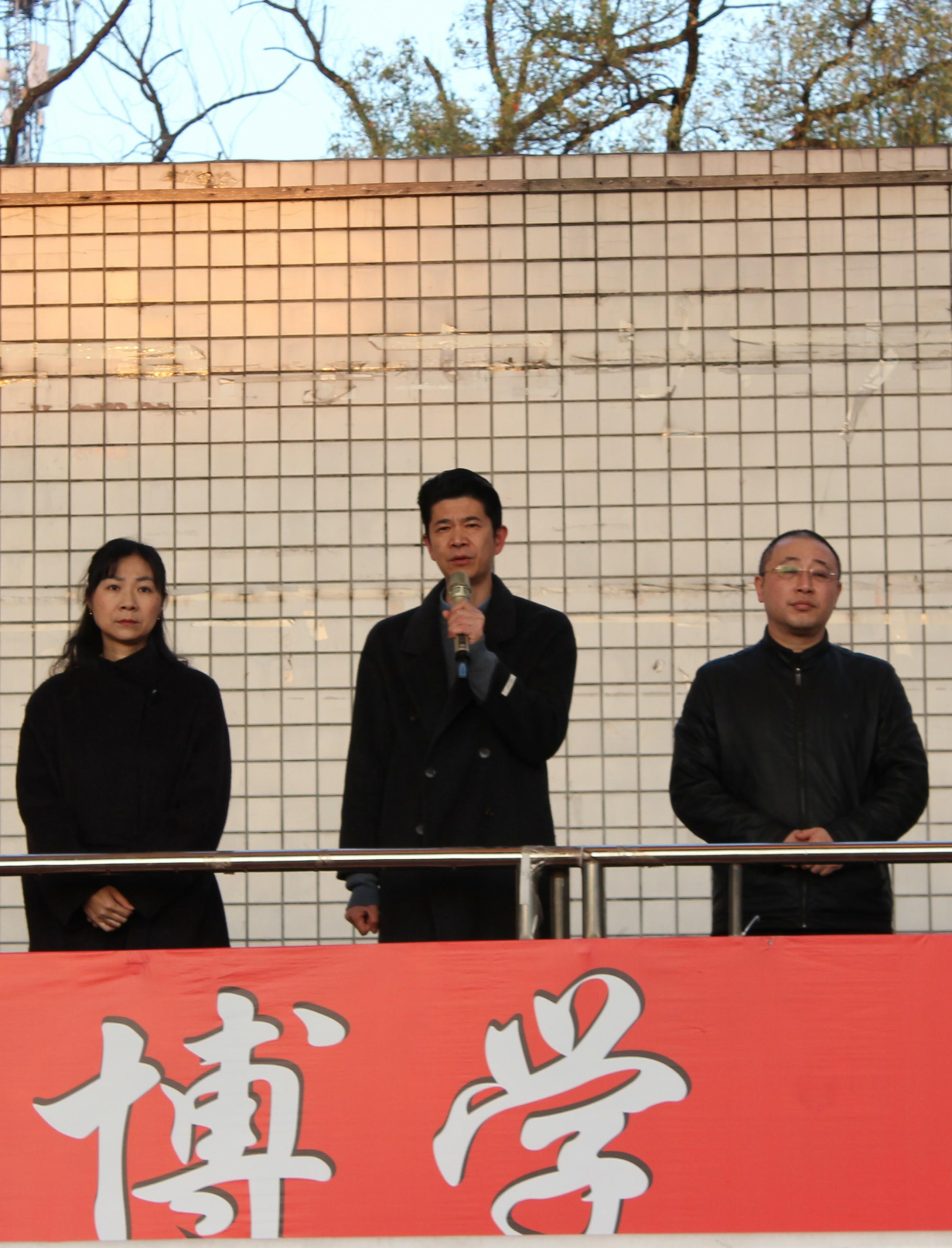 党委副书记李皓老师强调几点:一、提醒学生上课带笔记本,端正学习态度。二、指出升旗仪式存在迟到现象,要求学生重视。三、警告学生禁止在教室抽烟。
