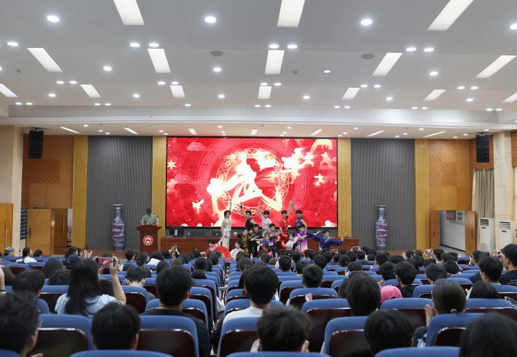 体育学院退役复学大学生现场展示换哨环节和战术匍匐、战术翻越等军事战术动作,武术与民族传统体育专业学生进行刀术、传统拳术等专项技能展演,现场气氛热烈。