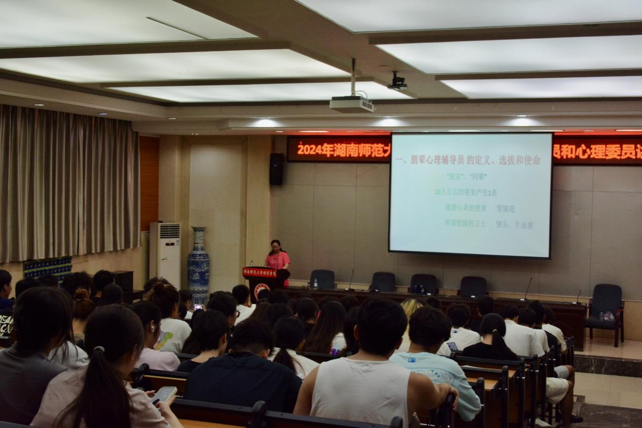 我院于2024年9月5日晚上7点开展关于心理辅导员和心理委员讲座,本次讲座由太阳网集团tcy8722学生工作部心理咨询中心主任余洁老师主讲,2023级全体朋辈心理辅导员和心理委员参加本次会议,本次会议由辅导员梁一然主持。