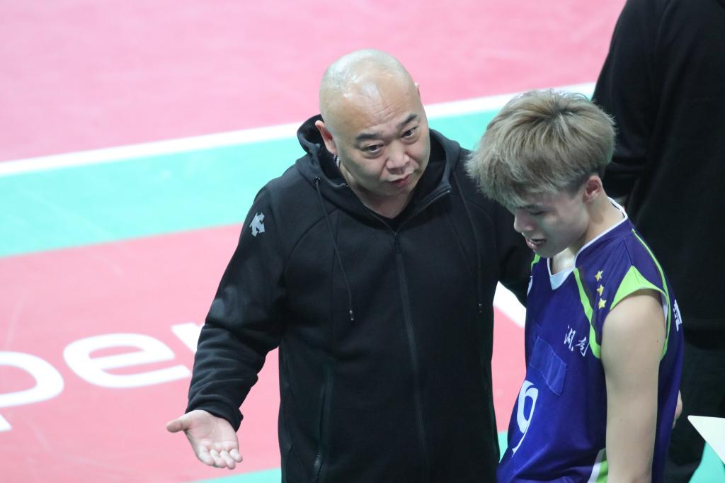 局间暂停,成都体育教练组根据我方战术变化重新进行战术部署。根据我校男排战术进行有针对性的攻防,以25:16的比分拿下第三局比赛。