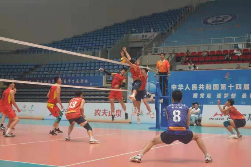 2021年7月10日,中华人民共和国第十四届学生运动会排球项目决赛(大学男子组)在山东青岛隆重举行,本次比赛由教育部、国家体育总局、共青团中央主办,山东省教育厅,青岛市人民政府承办。7月8日起,各代表队陆续到达中国石油大学,比赛也按时拉开帷幕。