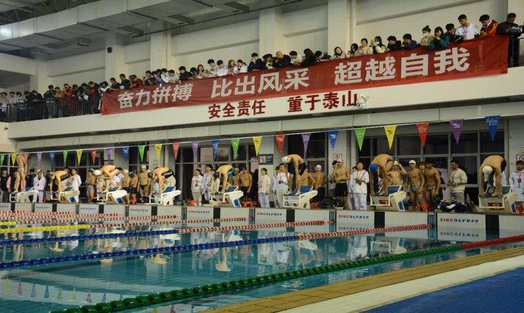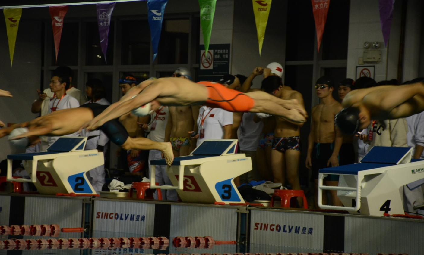 本次比赛在我院涵健馆内举行,共设自由泳、蝶泳、蛙泳、仰泳、混合泳接力赛等数十个水上项目,分为大学组、学院组、高职专科三个组别,吸引来自20多所学校的运动健儿们。运动会现场秩序井然,比赛状况激烈。在裁判员发令声下,运动员们齐入水中,在泳池中相互角逐,我院健儿一马当先,以优异的成绩体现了我院运动健儿坚持拼搏的奋斗精神。