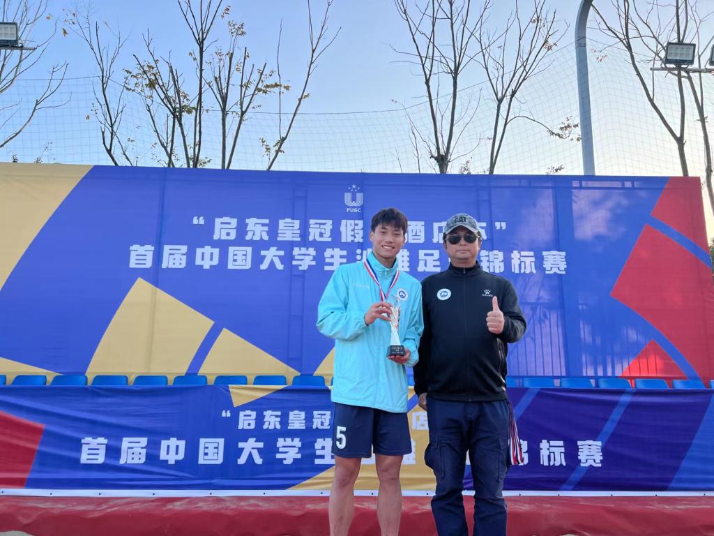 22级硕士研究生王博同学获评为“最佳运动员”,21级吉亚同学获得“最佳射手”,21级吕镒同学获得“最佳守门员”,李琼志老师获评“最佳领队”,女足主教练黄文宾教授获评为女子组“优秀教练员”,男足主教练张宇副教授获评为男子组“优秀教练员”。