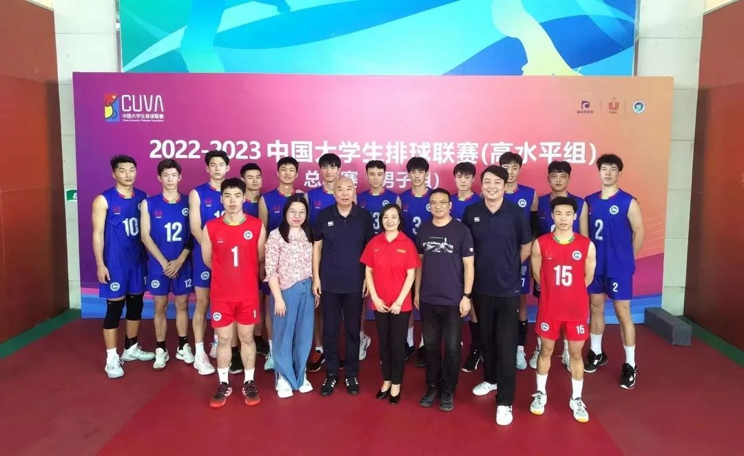 我校男排参加2020至2023年赛季CUVA,并于5月18日顺利收官,取得全国第六名的好成绩。本次比赛我院副院长余琳,排球教研室主任辜德宏,行政办副主任邓宏林曾到场为我校男排加油助威。
