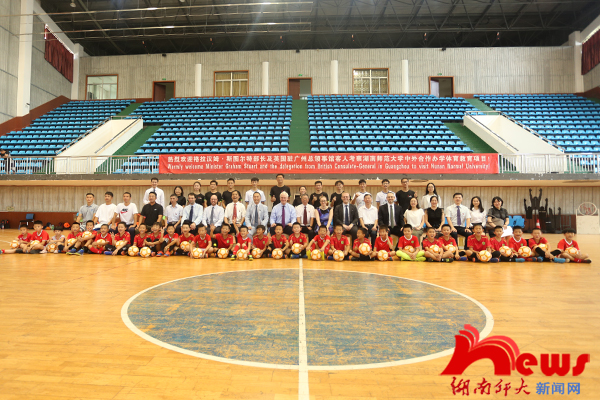 随后宾主双方来到行健馆篮球主馆,观摩了中外体教学生带领岳麓实验小学同学们举行的一场生动活泼的体育课。