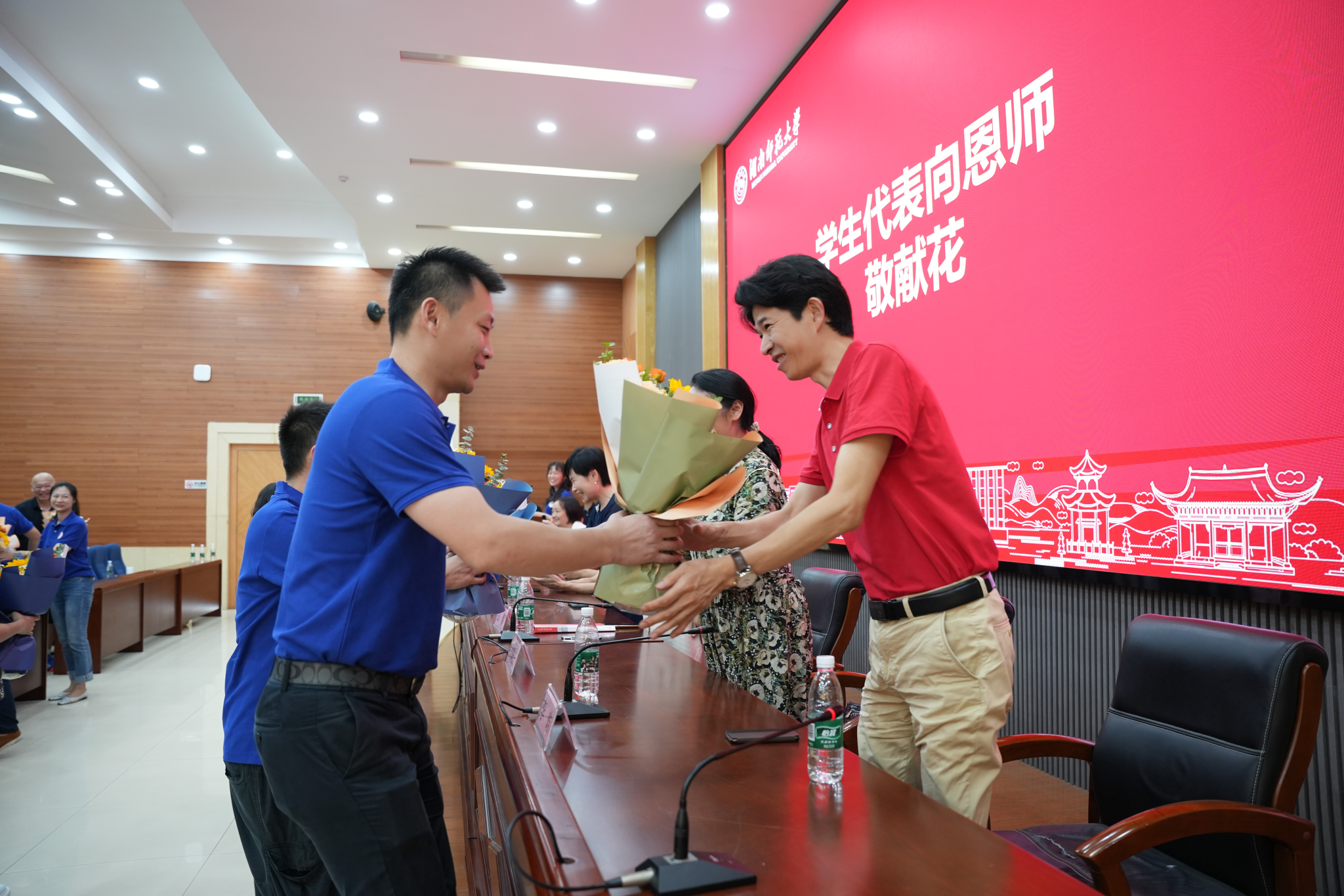 各专选班班长分别向老师们汇报了班级同学的现状,并代表班级向母校、老师表示美好的祝愿。随后,校友代表向全体老师献花,感谢老师的辛勤教导。