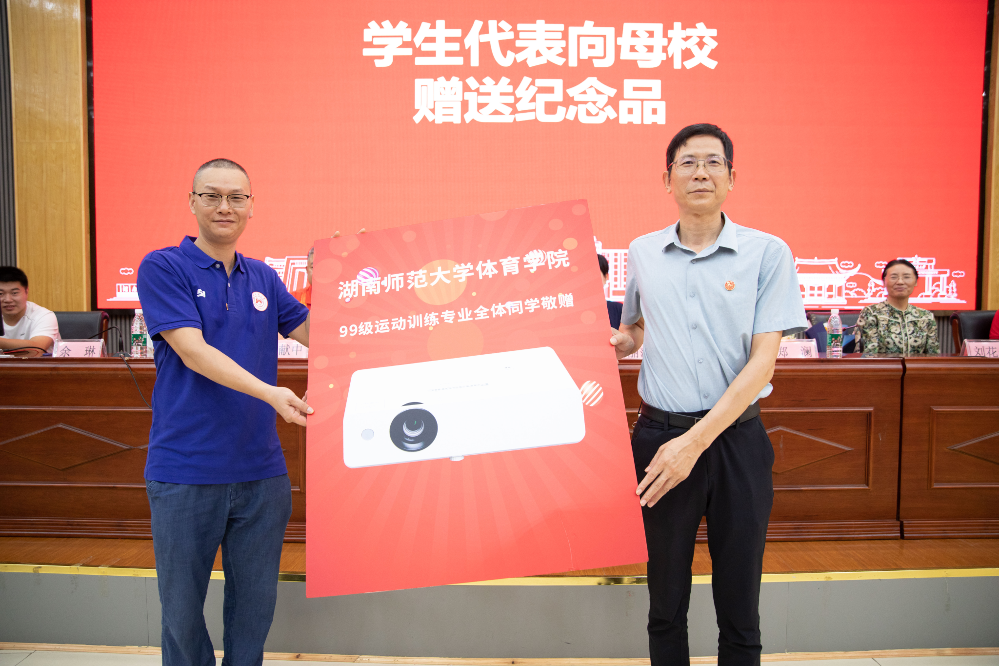 饮水思源,廖玲珑代表99运训全体同学向母校捐赠投影仪一台用于学院的教学建设,李波书记代表学院接受捐赠。