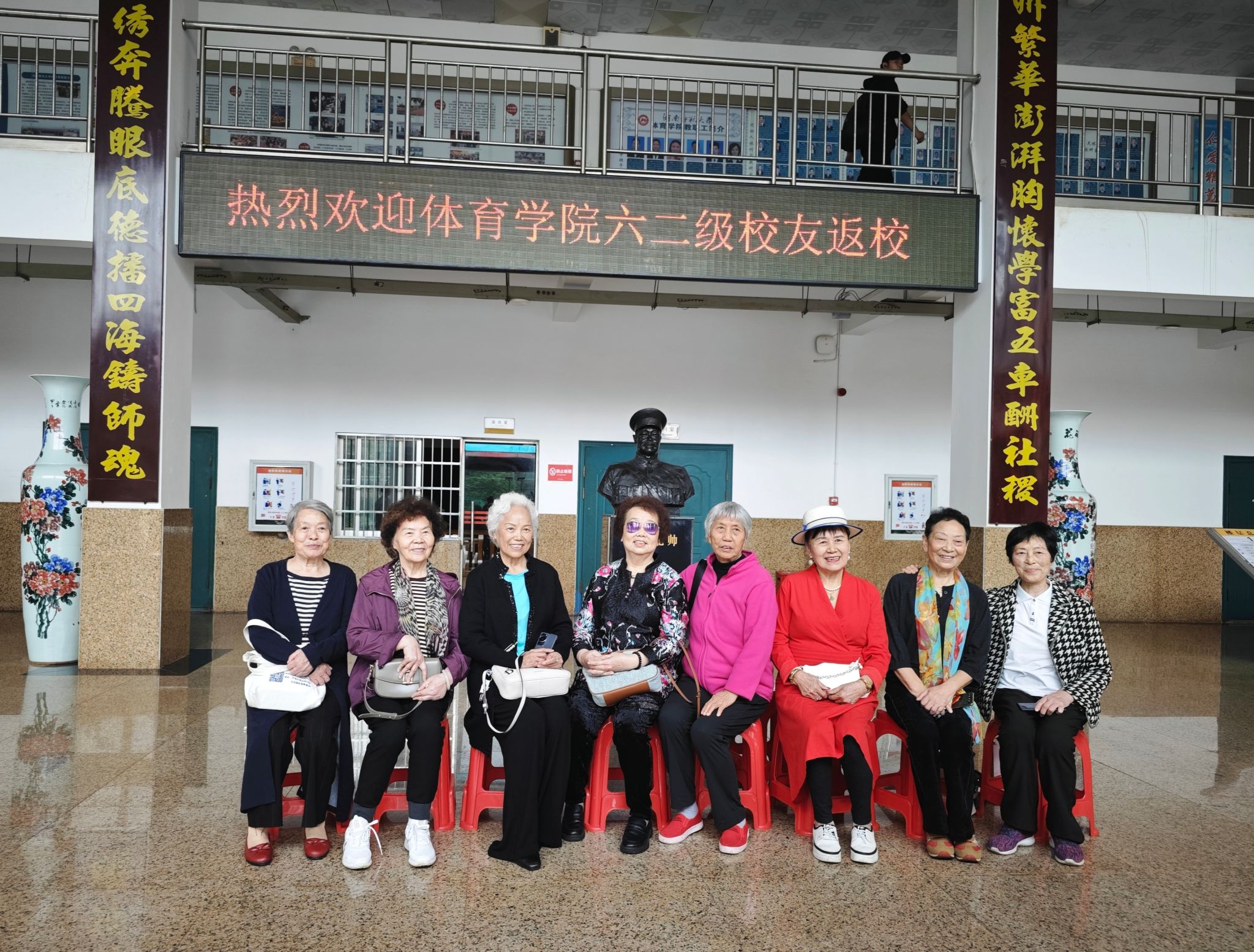 在教学楼合影留念之后,学院党委书记李波等教职工代表陪同校友们参观了院史馆、田径场、老体育馆等校园场馆。校友们对院史编纂、场馆建设等工作提出了一些宝贵建议。