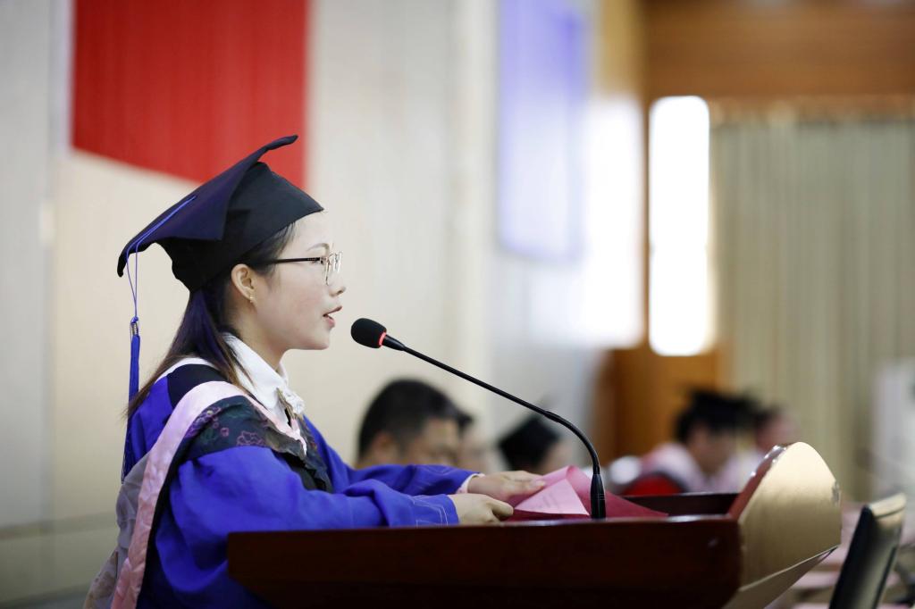 郑澜祝愿全体毕业生前程似锦,希望同学们带着真诚和善良出发,带着勇敢和无畏出发,带着感恩与勤勉出发,志存高远,不断前行。要继续发扬从事学术研究的精神,做勇于担当,甘坐板凳,务实求真的“学人”。首先,“学人”应当有担当精神,应自觉担负起探求自然世界、人类社会以及个体自身最为重要、最为根本的真理和意义的使命。其次,“学人”要有“板凳要坐十年冷,文章莫讲半句空”的从容淡定精神。再次,“学人”要有创造性与批判性兼备的求真务实精神。