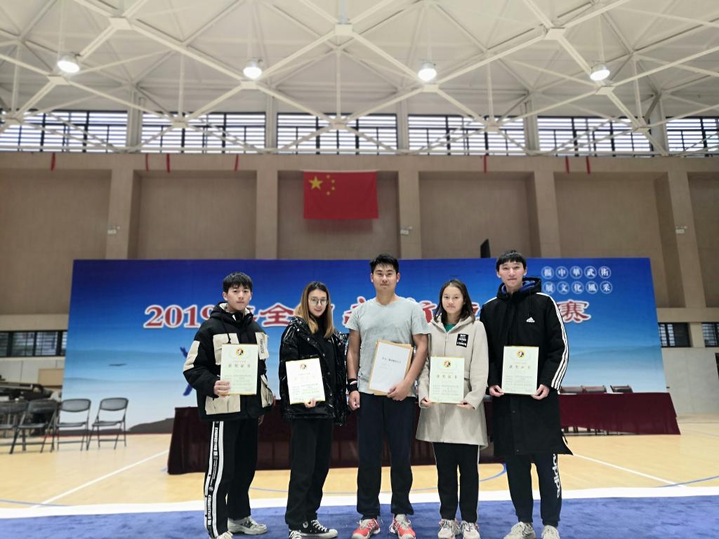 (供稿 校武术短兵队)2019年11月28-30日,由国家体育总局武术运动管理中心和中国武术协会联合主办的2019全国武术短兵锦标赛在武汉体育学院举行。我校派出体育学院曹欢、周宇、方铁军、吴谭锐、李嵚海5名学生在教练员谭腾飞老师的带领下参加本次比赛。曹欢连续战胜北京体育大学、武汉体育学院、兰州工业学院多名好手后获得男子组最大公斤级别冠军,周宇、方铁军、吴谭锐、李嵚海4名同学由于是第一次参加国家级别的大赛,经验不足,均只获得第5名的成绩。通过这次比赛,取得了成绩,锻炼了队伍,也为发展中国优秀的传统体育运动及文化做出了贡献。