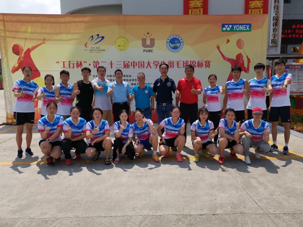 (供稿 校羽毛球队)7月19日上午,第二十三届中国大学生羽毛球锦标赛在湖南人文科技学院隆重开幕,我校校长刘起军出席开幕式。经过六天激烈的角逐,我校羽毛球队荣获乙组女子团体冠军、乙组女子双打亚军、乙组混合双打亚军、乙组女子单打季军、乙组男子单打季军、乙组男子团体第五名、乙组男子双打第五名、甲组女子团体第八名的好成绩,并获得“体育道德风尚奖”称号。