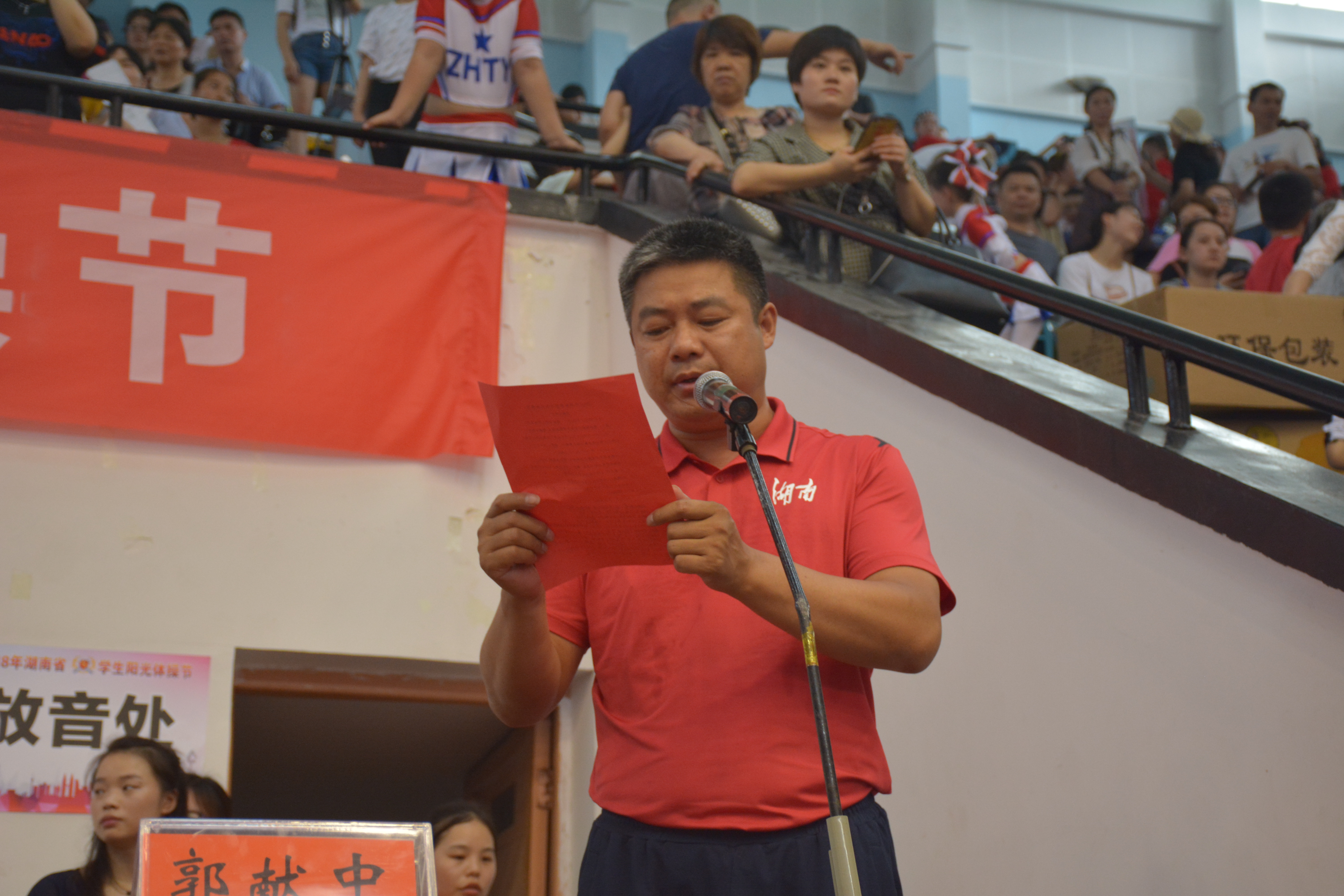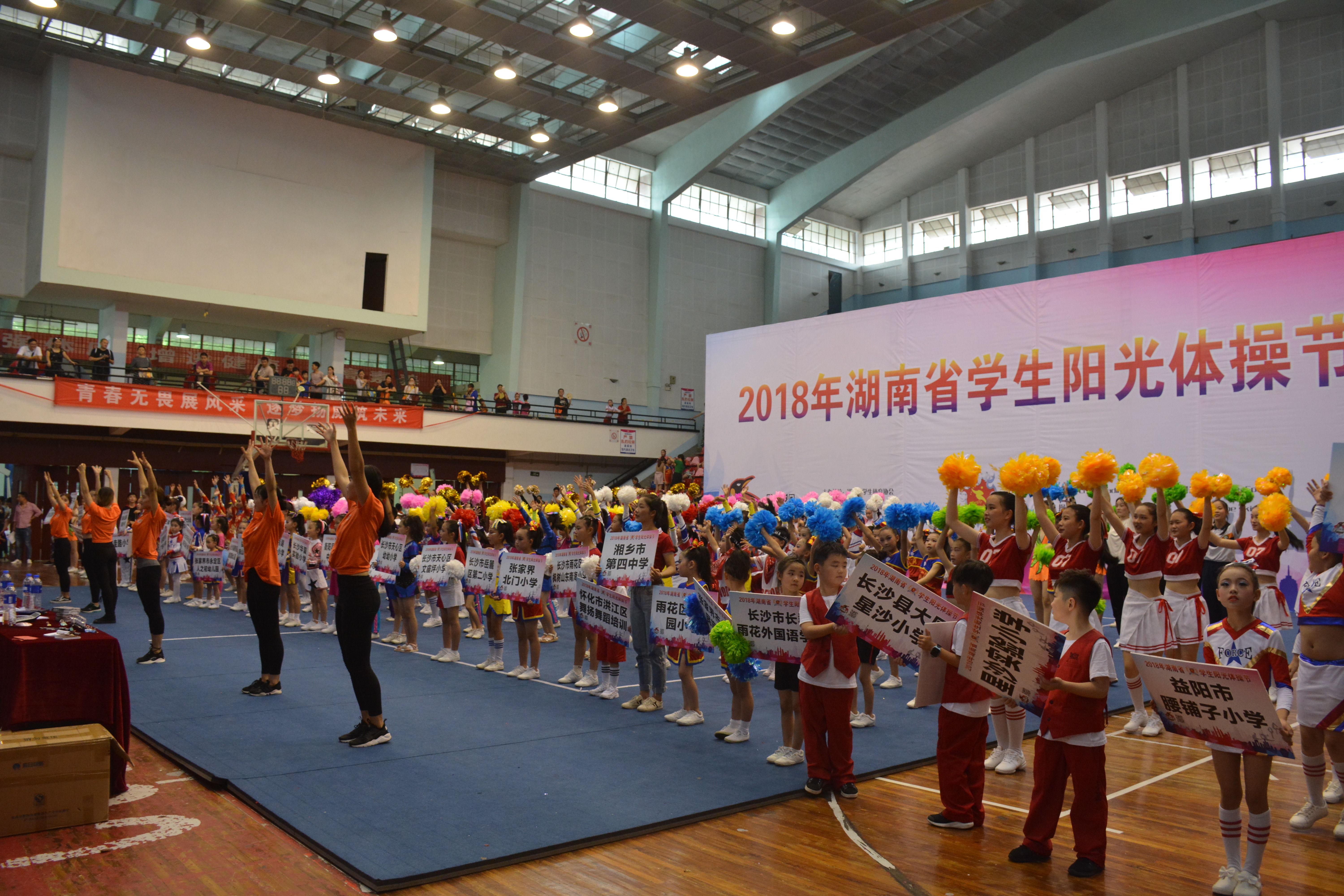 (通讯员 吴凌峰 余友)6月23号下午3点30分,太阳网集团tcy8722北院体育馆举行了2018年湖南省阳光体操节。本次嘉宾有湖南省体育总会主席冯湘江、湖南省教育厅体卫艺处处长彭四龙、湖南省教育厅体卫艺处调研员金彪、湖南省高校体育教学指导委员会秘书长,我院院长汤长发、我院原党委书记李明辉、我院现党委书记李波、我院副院长郭献中、我院教授、博士生导师周建社、湖南省教育厅体卫艺处主任王宇、湖南省学生体育协会项目主管侯荣建、湖南大众传媒职业技术学院体育部长李萍、本届比赛总裁判长李先熊莅临现场。开幕式由郭献中主持。