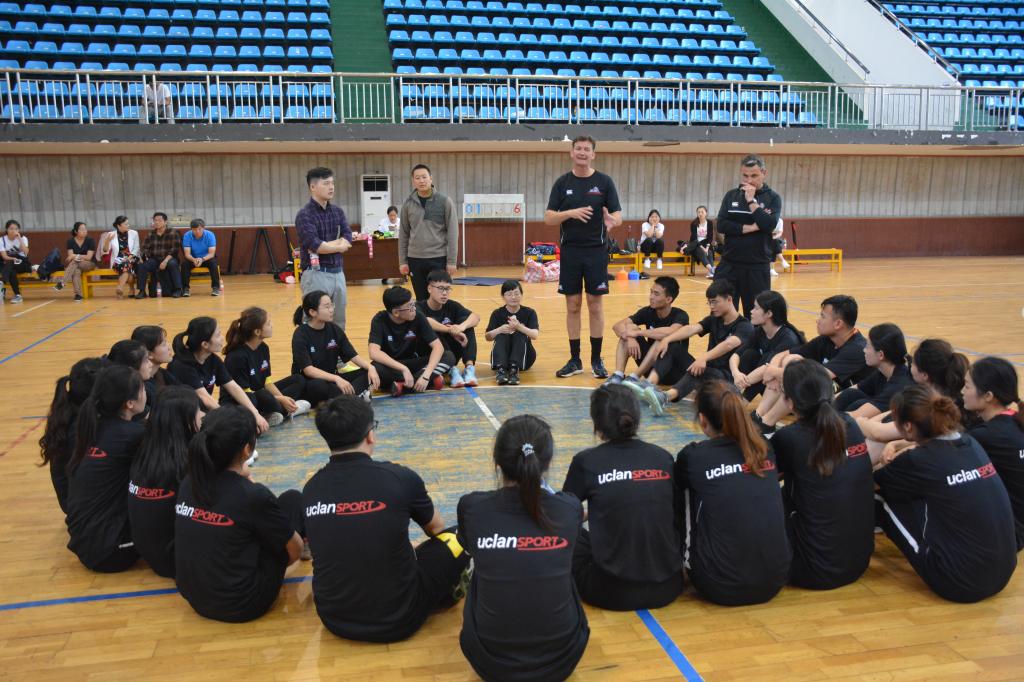 唐建文就我校与中央兰开夏大学合作的背景、合作项目申请过程,以及我校和体育学院在国内的地位、在校学生人数、教师队伍、体育成就等基本情况向认证组成员一一进行了介绍。