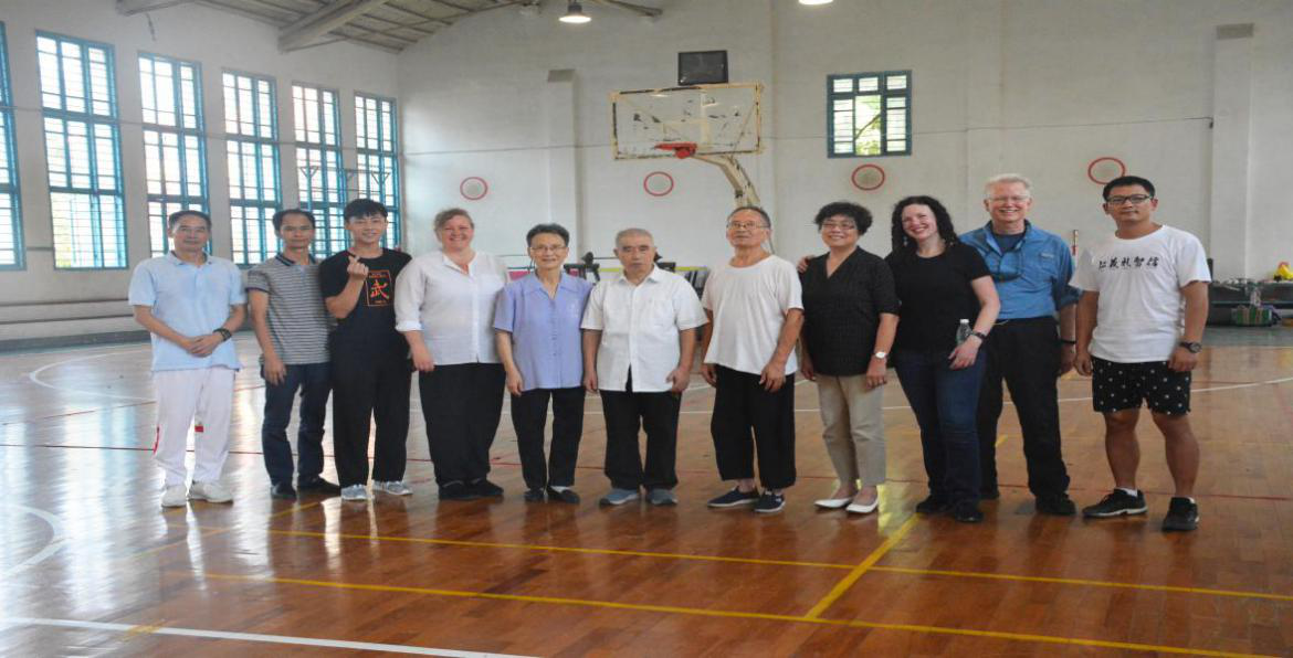 (通讯员 曹活 李婕)“教诲如金风,师恩似海深”。恰逢全国第35个教师节来临之际,2018级民传在武术训练馆举行了大学里第一次教师感恩表演活动。届时邀请了体育学院武术教研室前辈马明保老师、李静宁老师与黑仕枚老师,同时还有原体育学院教师李雪美从美国回母校考察,一行还有美国人Jayni Davis、Frank Stockdale Carney与Selena Camille Edwards。在现任武术教研室主任张继生教授陪同下观看2018级民传套路班、短兵队、长兵队与校龙狮团的表演。