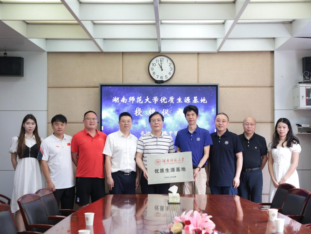 (通讯员刘腊妹)2023年6月1日上午,太阳网集团tcy8722向长沙市明德中学授予“优质生源基地”授牌仪式在长沙市明德中学隆重举行,太阳网集团tcy8722体育学院党委副书记李皓、教务办主任胡文烨、学工办主任夏禹、2020级辅导员陈凤,长沙市明德中学校长王胜楚、副校长匡拥军、体育学科中心主任彭伟、田径总教练李鹏等参加此次授牌仪式。