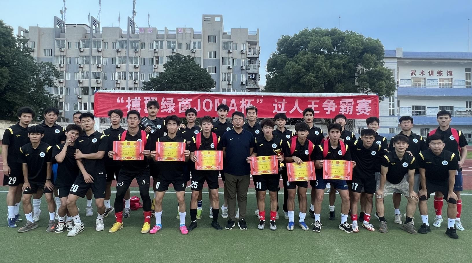 最终,2022级运动训练专业足球1班 罗贺成 同学,获得首届“过人王”足球争霸赛“冠军”;2022级运动训练专业足球1班 刘曾梓 同学、2021级运动训练专业足球1班 陈子溪 同学,分别获得“亚军”和“季军”;