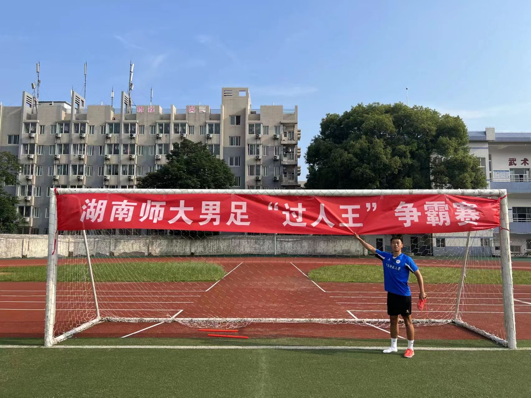 本次“过人王”足球争霸赛,从2023年5月24日-6月7日在体育学院足球场进行了为期15天、共计32场精彩比赛对决,比赛采用双淘汰赛制,总共30名球员进入最终的对决,比赛全程进行了抖音直播,取得很好的社会反响。