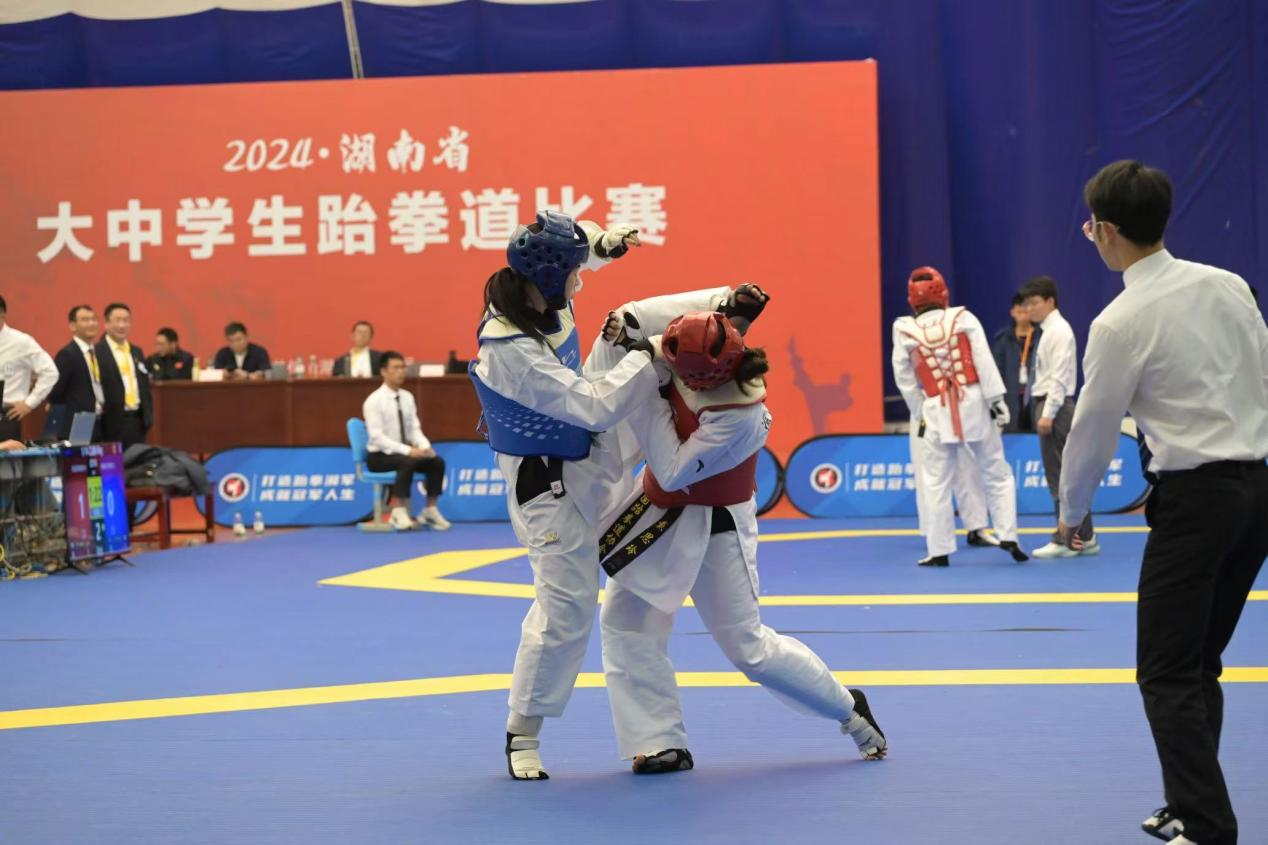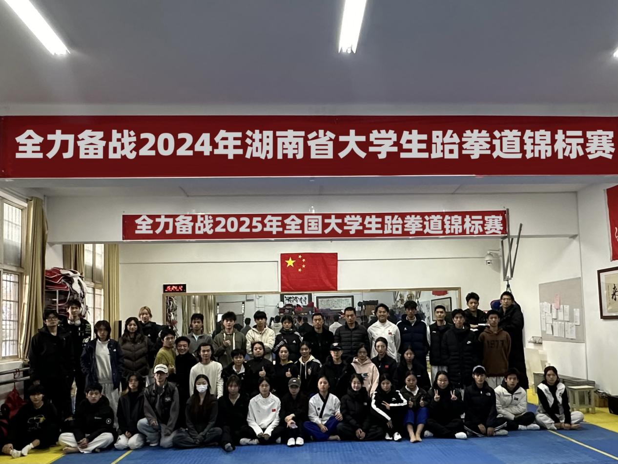(通讯员:曹菁遥)12月1日至6日,由湖南省教育厅主办,湖南体育职业学院承办,湖南省学生体育协会协办的2024年湖南省大学生跆拳道比赛在湖南体育职业学院顺利举行。我校跆拳道队由体育学院李波书记担任领队,石华毕担任主教练,汪明华担任教练,郑麟麒担任助理教练,出征队员共45人。