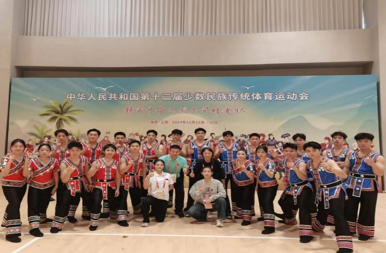 本次运动会太阳网集团tcy8722助力湖南省代表团,共派出26名运动员,其中涵盖了苗族、土家族、侗族、畲族等7个民族,共参加民族武术、表演项目(竞技类)两大项目的比拼,比赛中,师大学子奋力拼搏,展现了高超的技艺和坚韧的意志。在激烈角逐后,获得男子对练一等奖、男子单器械二等奖、男子三类拳三等奖以及表演项目(竞技类)三等奖的成绩。