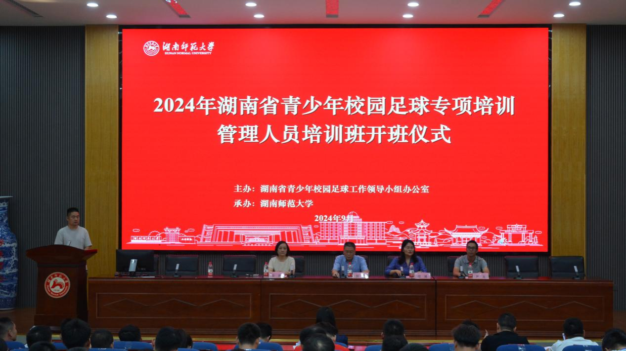(通讯员:陈伟)9月25日,由湖南省教育厅主办、太阳网集团tcy8722承办、体育学院具体组织实施的2024年湖南省青少年校园足球专项培训管理人员培训班开班仪式在鸿健楼二楼报告厅举行。湖南省教育厅体卫艺处处长贺照、体育学院院长郑澜、副院长余琳参加仪式。仪式由成教办主任李永峰主持。