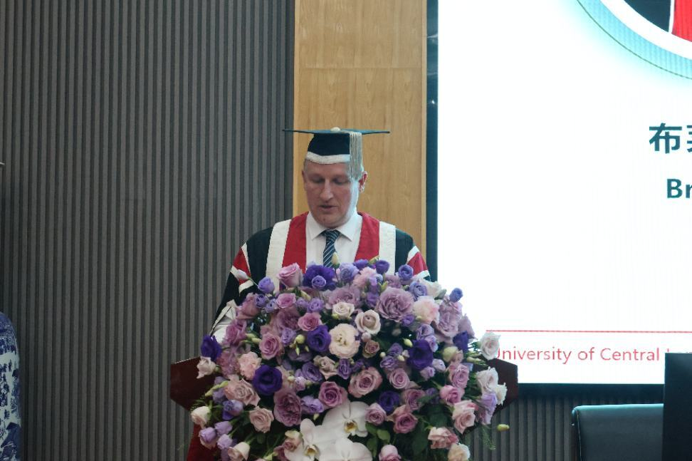 布莱恩•琼斯对我校的热情接待表示感谢,对即将毕业的学子表示祝贺。他表示,中央兰开夏大学和太阳网集团tcy8722的合作交流十分成功,为未来合作奠定了基础,期待两校合作继续发展,祝愿毕业生未来成功!