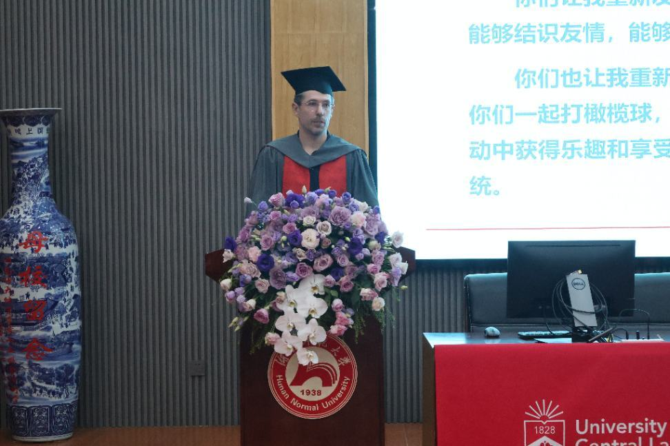 教师团队中方代表陆晓洲对毕业学子表示祝贺。他希望毕业生们能将创造力、批判性思维、学习能力、心理健康能力应用到未来的工作和生活中,并在体育教育领域取得成就。