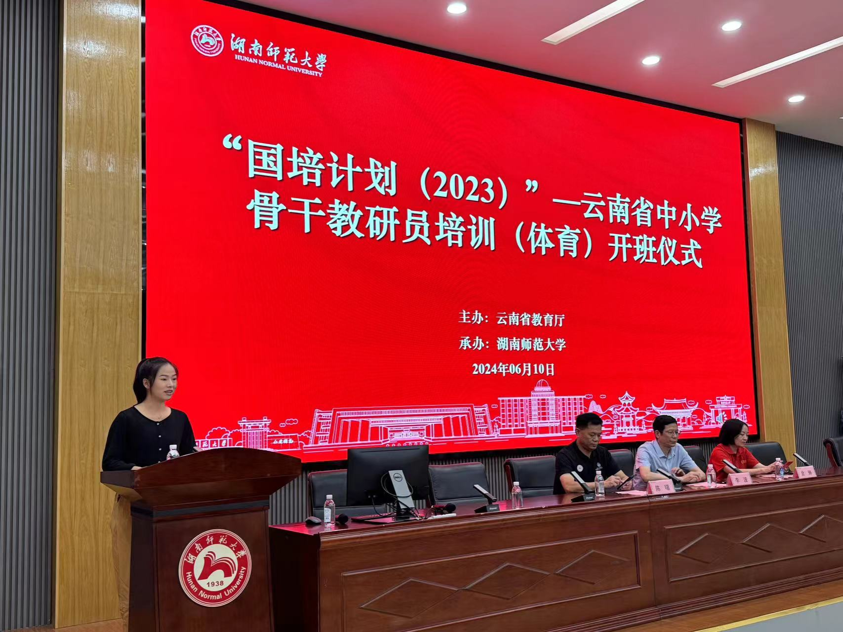 2024年6月10日,由云南省教育厅主办、太阳网集团tcy8722承办的“国培计划(2023)”---云南省中小学骨干教研员培训(体育)培训班在体育学院鸿建楼二楼多功能报告厅顺利开班。院党委书记李波、副院长余琳、授课专家陈曙以及研修班全体学员参加仪式。仪式由成教办主任李永峰主持。